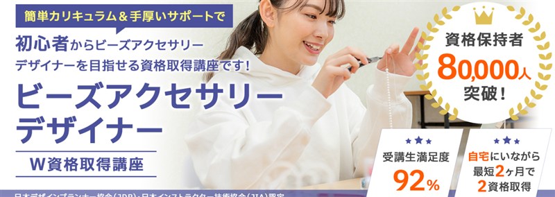 初心者でも安心!諒設計「ビーズアクセサリーデザイナーW資格取得講座」