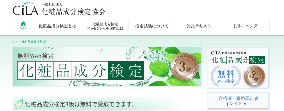 | 化粧品成分検定3級 | 無料 | 全10問の選択式テスト |