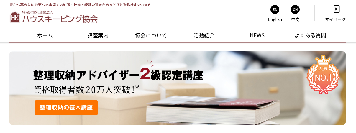 | 整理収納アドバイザー2級 | 24,700円 | 講習を受講 |