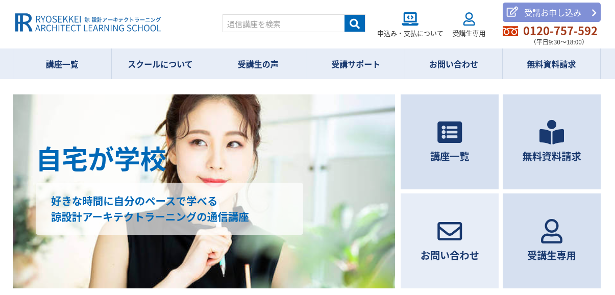 【諒設計アーキテクトラーニング】 最短2ヶ月でW資格取得! 完全初学者対応で、資格取得まで全工程が自宅で完結。 |