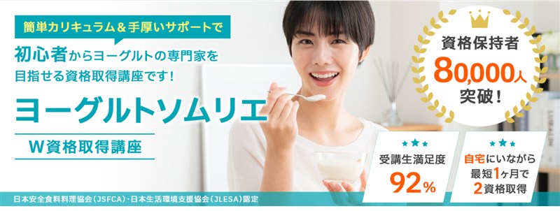 ヨーグルトソムリエは、日本安全食料料理協会(JSFCA)が認定する資格。