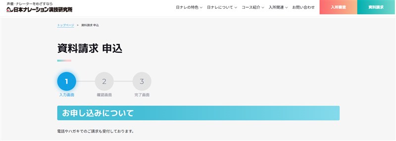 無料体験レッスン・入所審査は日ナレ公式サイトのフォームから申し込めます。