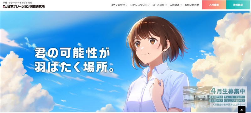 日本ナレーション演技研究所(日ナレ)では、声優になりたいと願うすべての人に向けて開かれた環境を提供。