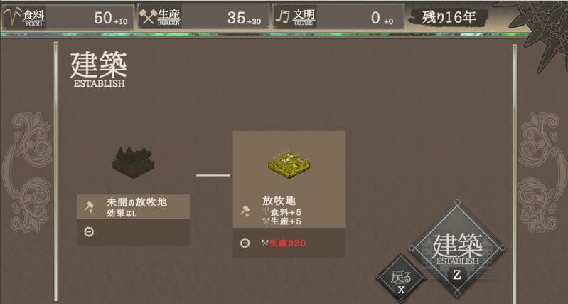 手持ちの資源とにらめっこしながら、100年かけて文明を作るゲームです。