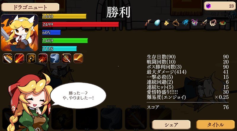 演出やUIは可愛らしく丁寧ですが、 ド派手なエフェクトや爽快アクションを期待すると、 やや落ち着いた印象を受けるかもしれません。