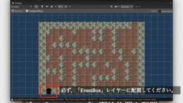 前回までの記事でプレイヤーキャラをマップ上で移動させ、アニメーションを付けることができました。前回の記事:今回の記事ではフィールドマップとダンジョンマップの切り替えを実装していきます。フィールドとダンジョンを移動するイベント用マスの作成まず...