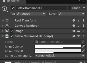 まずはBattleCommandUIプレハブの設定をInspectorから確認します。