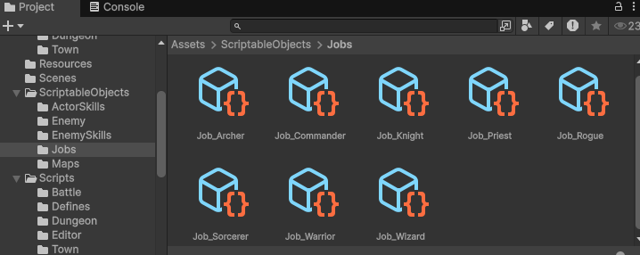 まずは職業データの定義から始めます。今回もScriptableObjectでデータ作成を行える設計にしていきましょう。