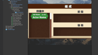 ただし、現時点ではダンジョンシーンからのバトルシーンへの移行がなく本当に編成が変わっているのかの確認ができません。よって次回はエンカウントシステムと戦闘の開始を実装していきます。