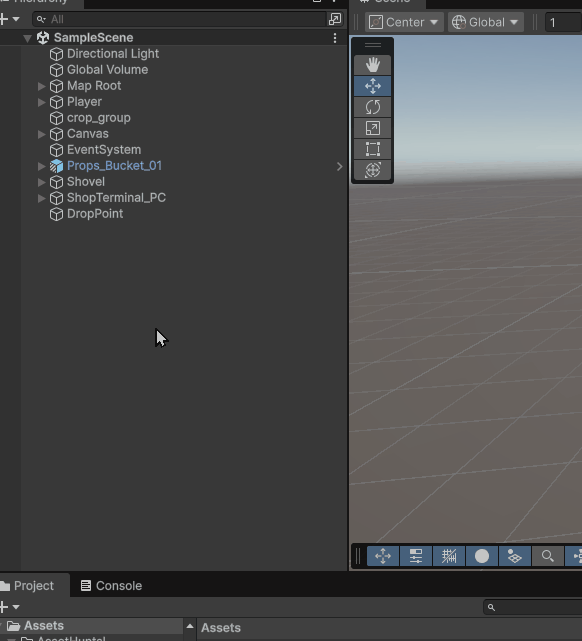 using UnityEngine; using DG.Tweening; public class ItemBase : MonoBehaviour { protected Rigidbody rb; // 自分と子すべてのコライダー private Collider[] colliders; // 元レイヤー protected int originalLayer; //DOTween 用パラメータ [Header("Tween 設定")] [SerializeField] protected float pickDuration = 0.15f; [SerializeField] protected float placeDuration = 0.2f; [SerializeField] protected Ease pickEase = Ease.OutQuad; [SerializeField] protected Ease placeEase = Ease.OutQuad; // 手持ち中に使うTween(途中で拾い直しなどがあった場合にKillする用) protected Tweener moveTween; protected Tweener rotateTween; [SerializeField] private string playerRootTag = "Player"; protected virtual void Awake() { rb = GetComponent<Rigidbody>(); colliders = GetComponentsInChildren<Collider>(true); originalLayer = gameObject.layer; } // 手に持つとき public virtual void OnPickedUp(Transform handPoint) { // 既存のTweenがあれば止める KillTweens(); // 物理設定 if (rb != null) { if (!rb.isKinematic) { rb.linearVelocity = Vector3.zero; rb.angularVelocity = Vector3.zero; } rb.isKinematic = true; rb.useGravity = false; } // コライダーOFF(Rayを邪魔しない) SetCollidersEnabled(false); // Handレイヤーへ再帰的に変更 bool isPlayerPickup = handPoint != null && handPoint.root != null && handPoint.root.CompareTag(playerRootTag); if (isPlayerPickup) { int handLayer = LayerMask.NameToLayer("Hand"); SetLayerRecursiveInternal(transform, handLayer); } else { // Player以外が拾ったとき } // まず親を手にする(位置ズレを防ぐ) transform.SetParent(handPoint, worldPositionStays: true); // ローカル座標へ Tween で寄せる moveTween = transform.DOLocalMove(Vector3.zero, pickDuration) .SetEase(pickEase); rotateTween = transform.DOLocalRotate(Vector3.zero, pickDuration) .SetEase(pickEase); } // 落とすとき public virtual void OnDropped(Vector3 forward) { transform.SetParent(null); if (rb != null) { rb.isKinematic = false; rb.useGravity = true; float pushPower = 1.0f; rb.AddForce(forward * pushPower, ForceMode.VelocityChange); } SetCollidersEnabled(true); // レイヤー戻す SetLayerRecursiveInternal(transform, originalLayer); // 軽い演出 transform.DOPunchScale(Vector3.one * 0.05f, 0.2f, 8, 0.8f); } // 棚などに置くとき public virtual void OnPlaced(Vector3 position, Quaternion rotation, ItemPlacementSurface surface) { KillTweens(); transform.SetParent(surface.transform, worldPositionStays: true); if (rb != null) { rb.isKinematic = true; rb.useGravity = false; } // コライダーON(棚の上から再度拾えるように) SetCollidersEnabled(true); // 元レイヤーへ戻す(手カメラではなく通常カメラで表示) SetLayerRecursiveInternal(transform, originalLayer); // ふわっと指定位置/回転へ動かす moveTween = transform.DOMove(position, placeDuration) .SetEase(placeEase); rotateTween = transform.DORotateQuaternion(rotation, placeDuration) .SetEase(placeEase); } // 共通:コライダー ON/OFF protected void SetCollidersEnabled(bool enabled) { if (colliders == null) return; foreach (var c in colliders) { if (c != null) c.enabled = enabled; } } // レイヤー操作(親子含めて変更) protected void SetLayerRecursiveInternal(Transform t, int layer) { t.gameObject.layer = layer; foreach (Transform child in t) { SetLayerRecursiveInternal(child, layer); } } // Tween 停止 protected void KillTweens() { moveTween?.Kill(); rotateTween?.Kill(); moveTween = null; rotateTween = null; } protected virtual void OnDestroy() { KillTweens(); } } |
