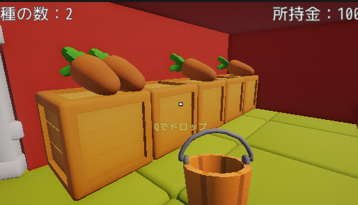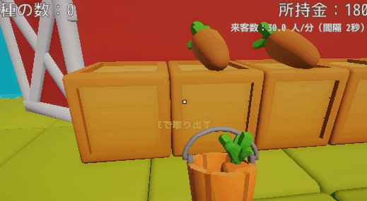 商品棚を追加し、そこに収穫したにんじんを陳列することでお客さんが商品を買いに来るようにしてみましょう。