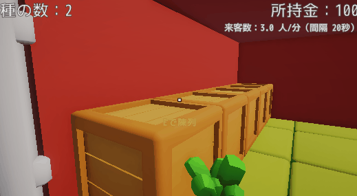 - 作成した商品棚に農作物を配置し