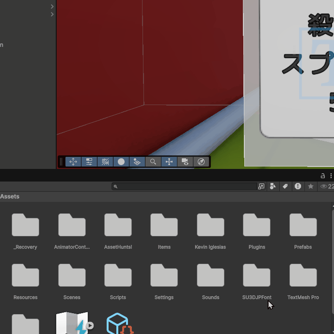 ProjectウィンドウでPrefabsフォルダを開き、HierarchyにあるBugSprayItemをドラッグ&ドロップしてプレハブ化しましょう。