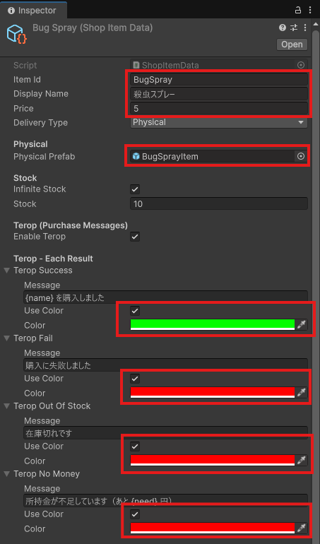 次に、殺虫スプレー用のShopItemDataを登録します。