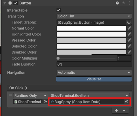 これにより、ShopTerminalスクリプトから殺虫スプレーを追加し、購入できるようになります。