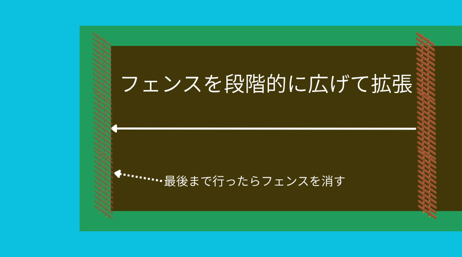 • フェンスが拡張の限界位置まで到達したら、フェンスを削除する。