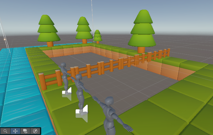 その後、Ctrl + Dを6回押して複製し、フェンスが合計7個になるように配置します。