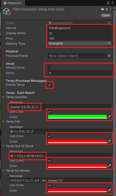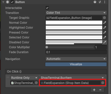ShopTerminal_PCを選択し、ShopTerminalコンポーネントのItemsに作成したFieldExpansionを追加しましょう。