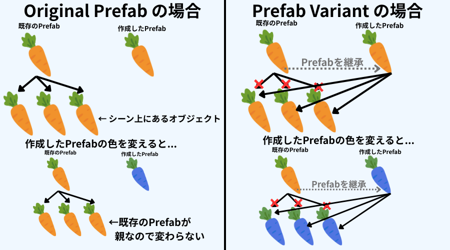 元Prefabの変更が自動で反映されるため、量産用や差分管理向けですが、今回の講座では使用しません。