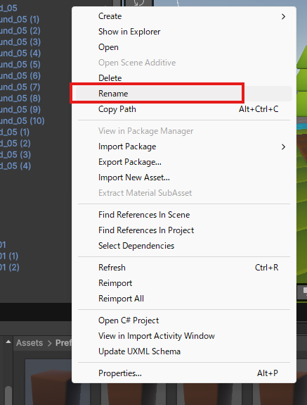 Prefabの名前を「FieldStage_0」から「FieldStage_4」になるように変更しましょう。