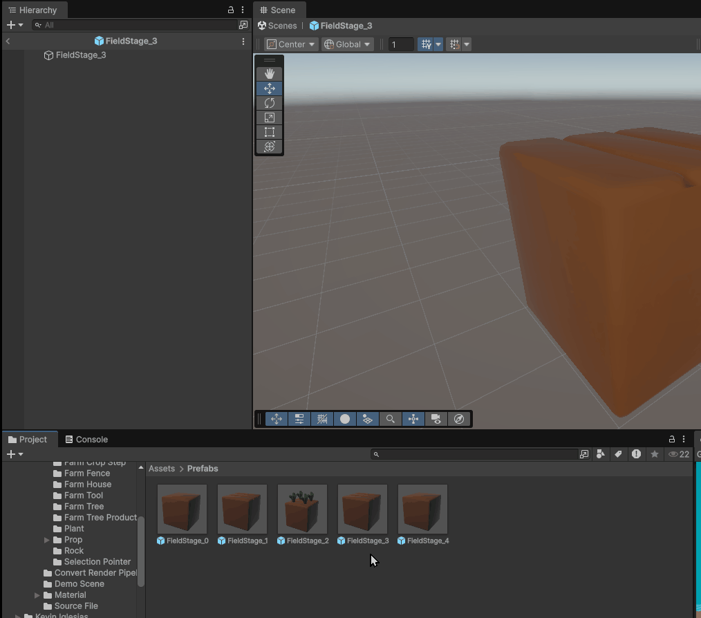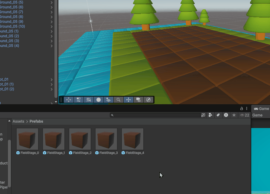 このように段階ごとにPrefabを分けておくことで、成長状態の切り替えをシンプルに管理できるようになります。