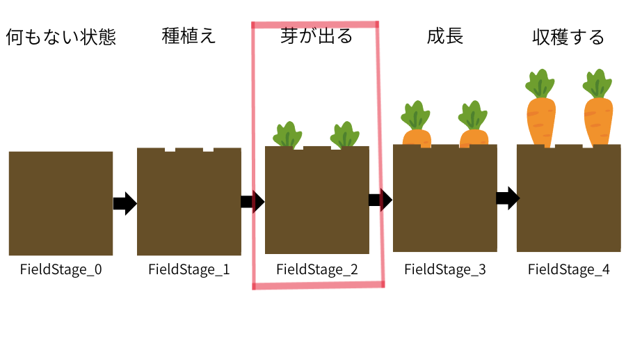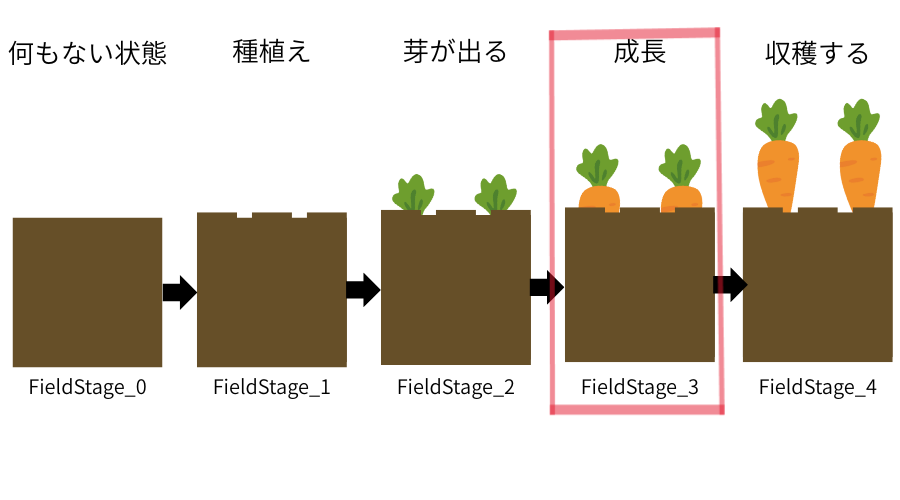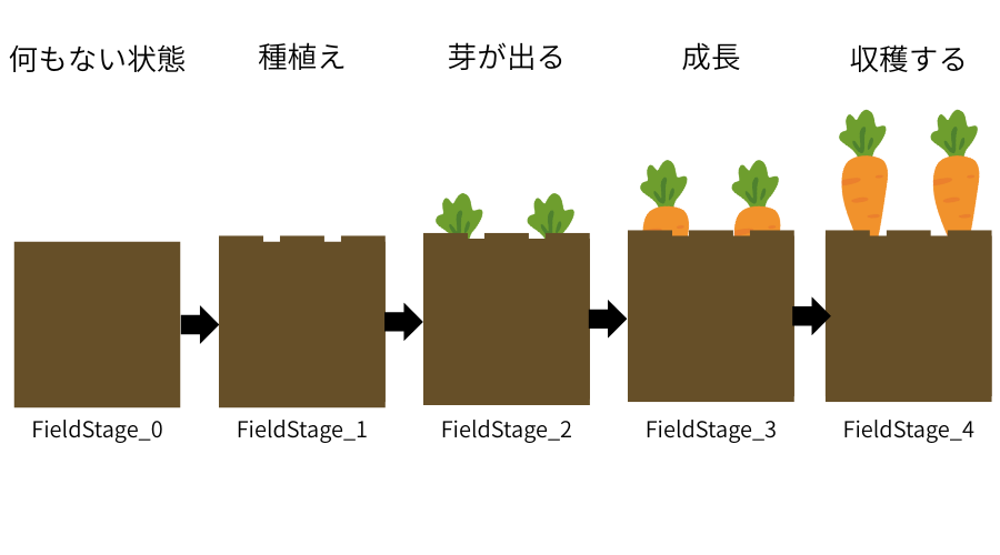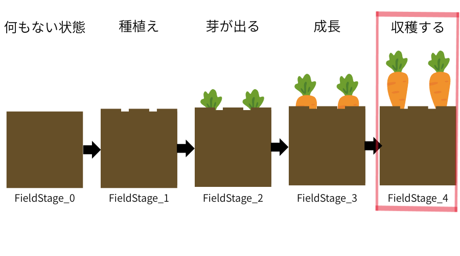 作成した5段階の畑をスクリプトから制御して成長するようにしてみましょう。