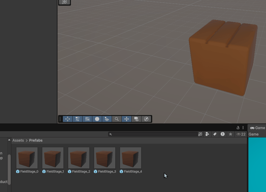 Prefabsフォルダに戻り「FieldStage_4」をダブルクリックして、Prefab編集モードに入りましょう。