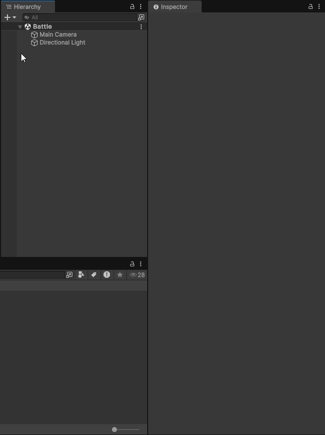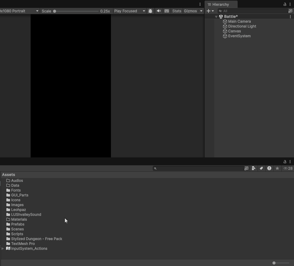 バトルシーンを作成していきます。[Assets]→[Scenes]にある[Battle]をダブルクリックしてダンジョンシーンを開きます。