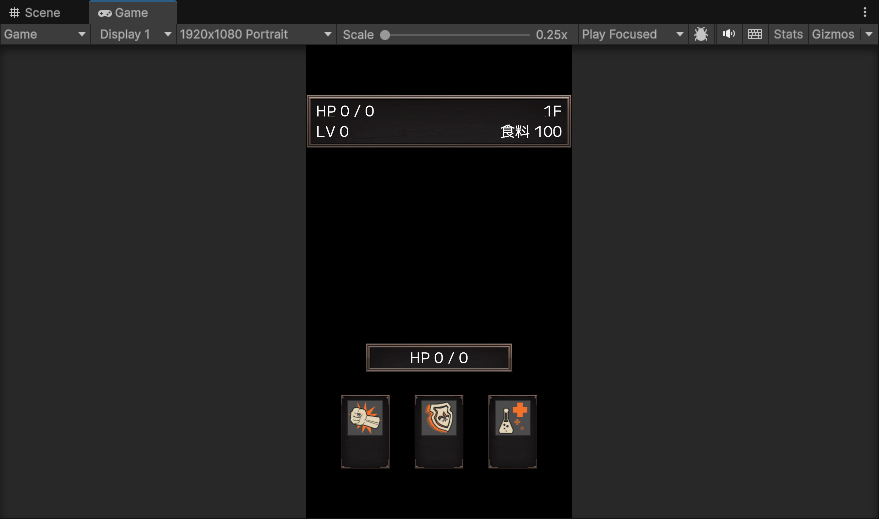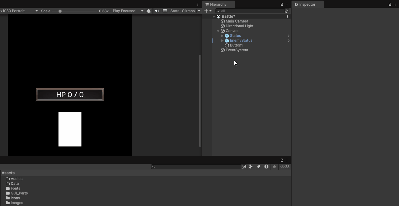 Gameビューに上画像のようにステータスウィンドウが2つ表示されていることを確認します。