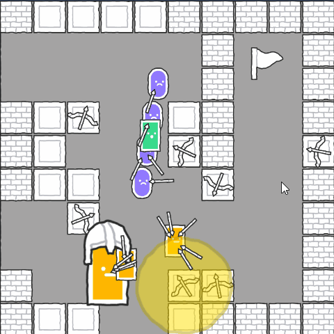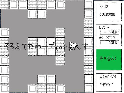 - wave5 で、計画的に弓を配置していないとゲームオーバーになってしまうような敵の量、経路で敵を配置。