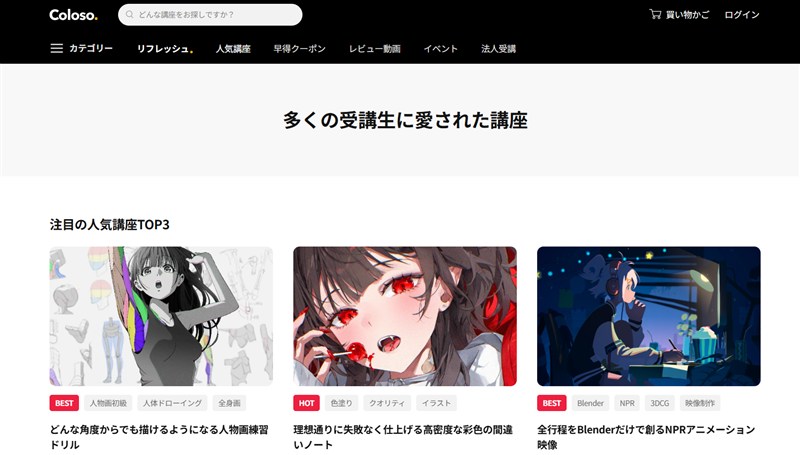 Coloso(コロソ):現役プロから直接学べるオンライン講座!イラスト・3DCG・映像制作など、クリエイター向け講座が充実!