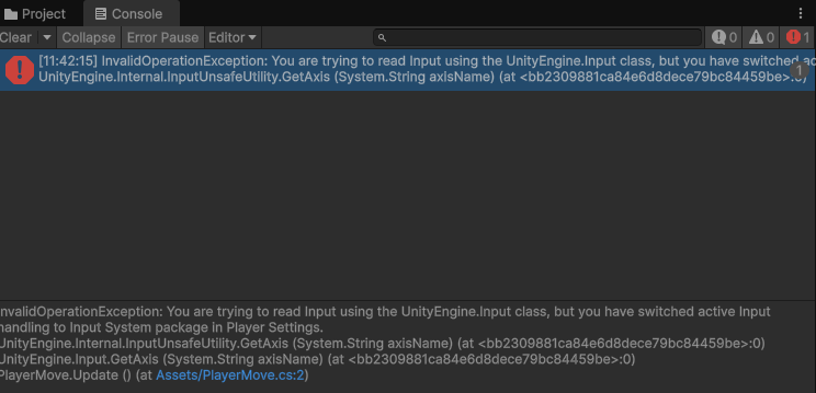 InvalidOperationException: You are trying to read Input using the UnityEngine.Input class, but you have switched active Input handling to Input System package in Player Settings. UnityEngine.Internal.InputUnsafeUtility.GetAxis~~