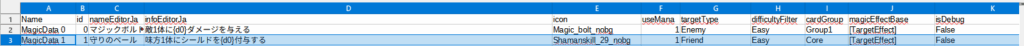 各ファイル同様に必要なデータ構造がScriptable ObjectからCSVとして出力されていることがわかります。