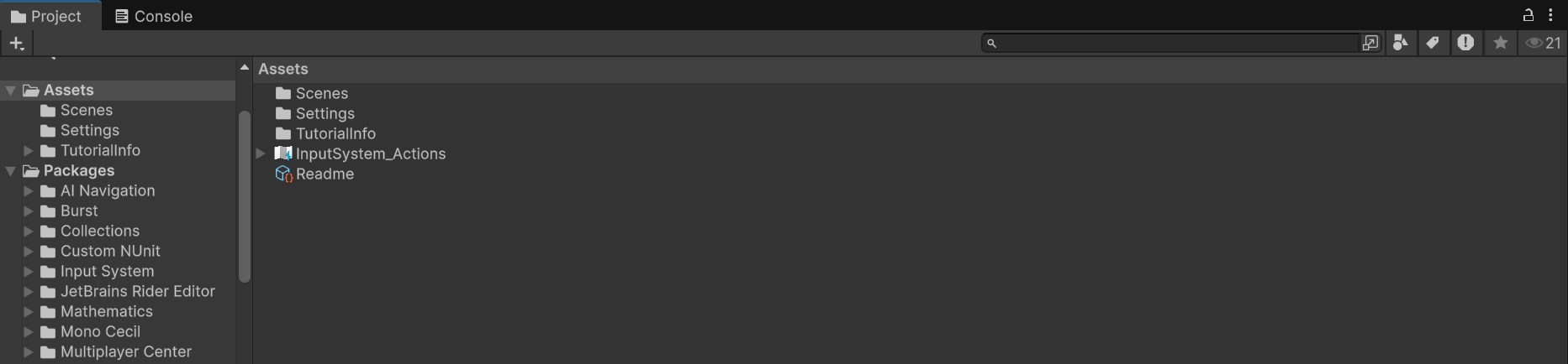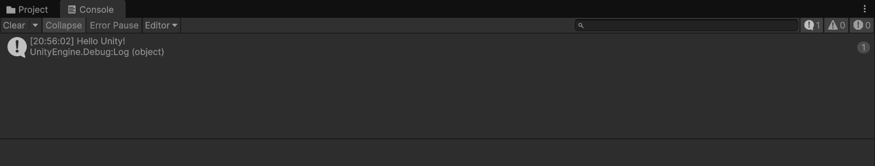Projectウィンドウの隣にある「Console(コンソール)」タブも覚えておきましょう。