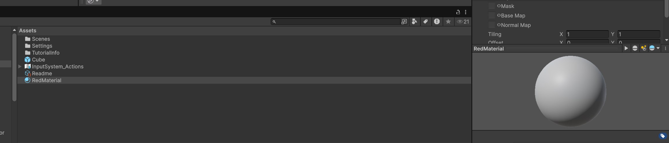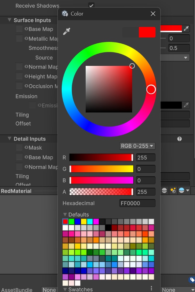 1. ProjectウィンドウのRedMaterialを1回クリックして選択する