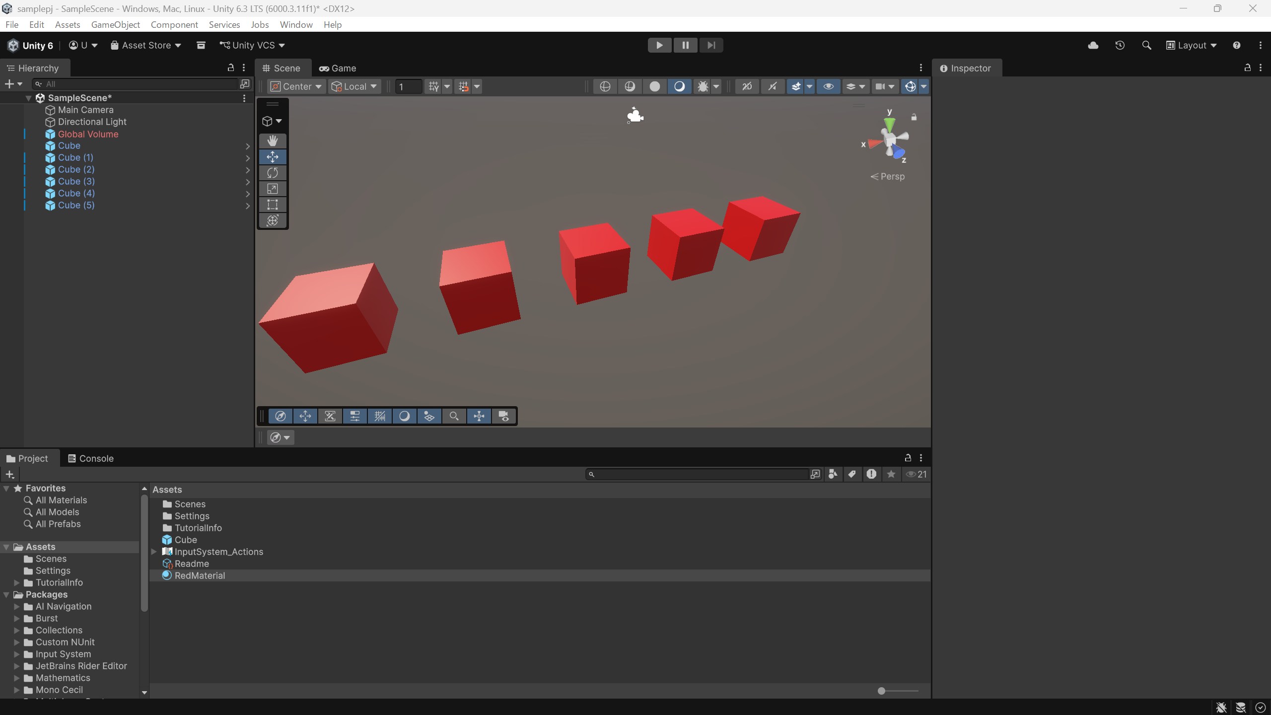 1. ProjectウィンドウのAssets直下にある「Cube」を、Hierarchyにドラッグ&ドロップする