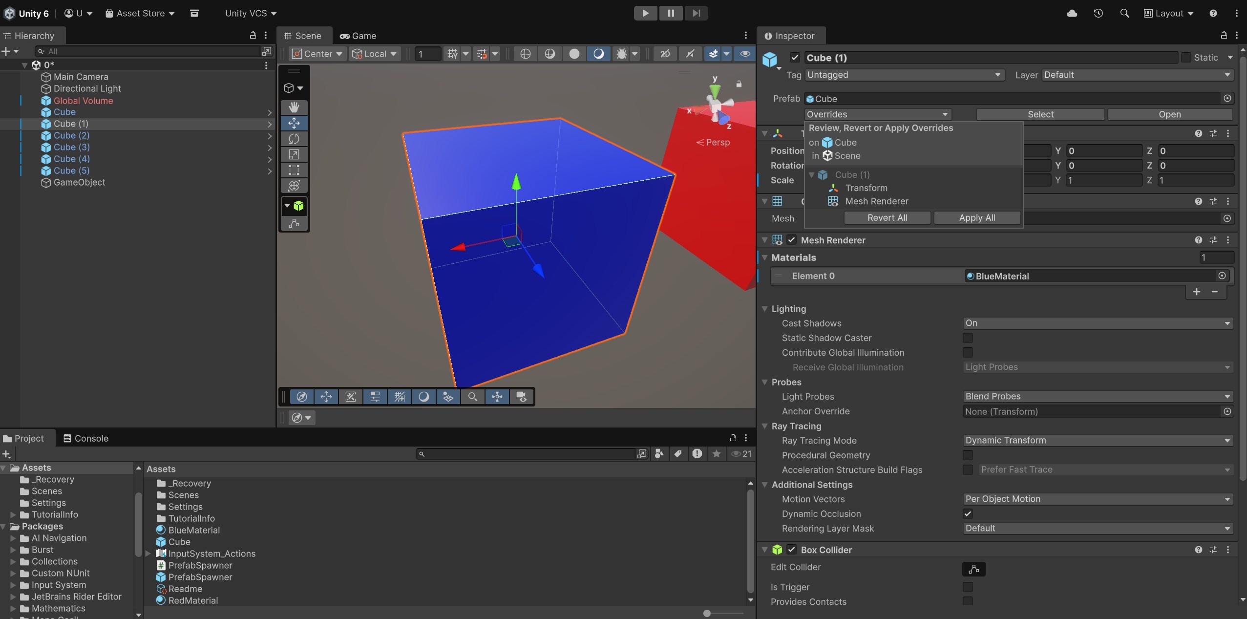 • Revert All(リバートオール):個別の変更を取り消して、プレハブの設定に戻す
