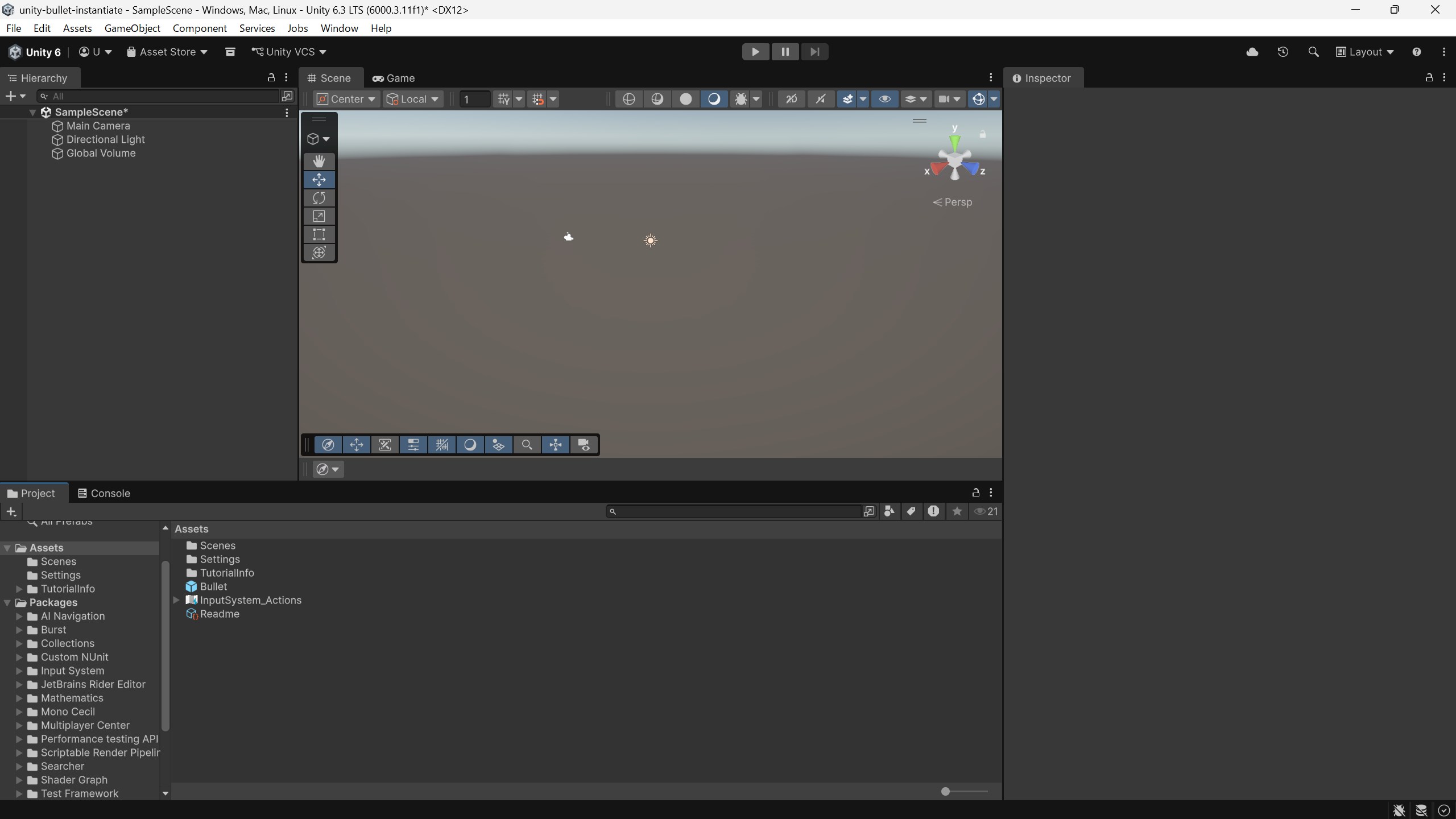 - 名前を「Bullet」に変更する(Hierarchyで選択してF2キー)